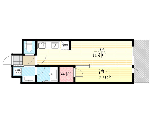 1LDK (LDK8.9帖、洋室3.9帖) |